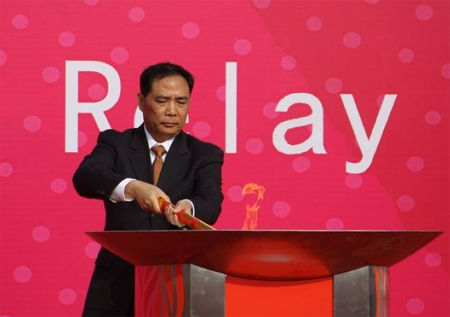 9點40分左右,火炬護衛(wèi)隊護送火種燈和火炬上臺,廣州市檢察院黨組書記、檢察長王福成上臺點燃火種盆;9點42分左右,廣州市委常委、廣州經(jīng)濟技術開發(fā)區(qū)管委會主任、黨工委書記、蘿崗區(qū)委書記凌偉憲上臺點燃火炬交給第一棒火炬手中國殘聯(lián)愛心大使、廣州亞殘運會愛心大使南欣并宣布火炬?zhèn)鬟f活動開始;9點45分左右第一棒火炬手正式起跑。