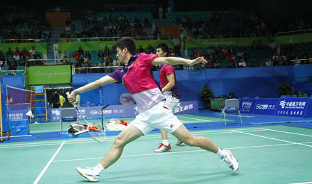 廣州亞運(yùn)會(huì)羽毛球男雙1/4決賽,蔡赟/付海峰以兩個(gè)16-21負(fù)于宿敵鄭在成/李龍大,繼團(tuán)體決賽后再次失利,無(wú)緣四強(qiáng)。