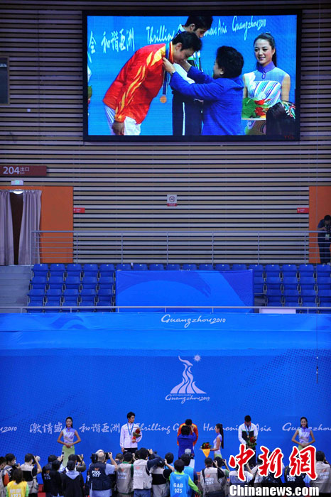 11月13日,在廣州亞運會女子鐵人三項比賽中,日本選手足立真梨子摘金,成為日本代表團在本屆賽事上的首面金牌。日本選手土橋茜子獲銀牌,銅牌獲得者是韓國選手張允貞。中國澳門隊許朗排第四,中國小將劉婷排在五名。圖為鐵人三項賽場外的工作人員觀看賽事。中新社記者 富田 攝