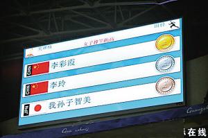 賽場(chǎng)大屏幕顯示女子撐桿跳高的金銀銅牌歸屬