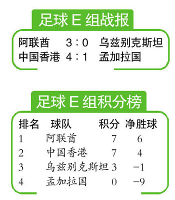 昨天(11日)下午,2010年廣州亞運(yùn)會(huì)結(jié)束了男足比賽E組的較量,中國香港隊(duì)在花都體育場(chǎng)以4比1大勝孟加拉隊(duì),小組賽3戰(zhàn)2勝1平積7分,雖然因凈勝球的劣勢(shì)獲得小組次名,但卻是時(shí)隔52年之后再次在亞運(yùn)會(huì)的足球比賽中出線晉級(jí)淘汰賽。