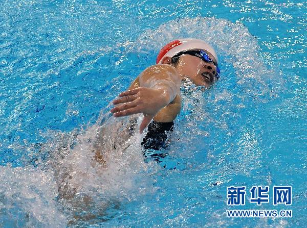 12月13日,中國選手晉曉琴在比賽中。當日上午,在廣州2010亞殘運會游泳比賽女子S8級100米蝶泳決賽中,中國選手晉曉琴以1分13秒10的成績奪得冠軍。新華社記者王頌攝