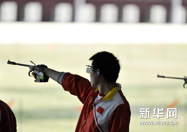 11月13日,中國(guó)選手伍晶在男子50米手槍比賽中。當(dāng)日,在第16屆亞運(yùn)會(huì)射擊項(xiàng)目比賽中,中國(guó)隊(duì)獲得男子50米手槍團(tuán)體亞軍。新華社記者陳曄華攝