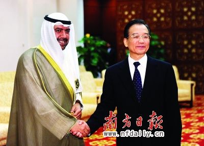 國(guó)務(wù)院總理溫家寶12日在廣州會(huì)見(jiàn)了出席亞運(yùn)會(huì)開(kāi)幕式的亞奧理事會(huì)主席艾哈邁德·薩巴赫(見(jiàn)右圖,新華社發(fā))和國(guó)際奧委會(huì)主席羅格等國(guó)際體育組織官員,并分別會(huì)見(jiàn)了出席亞運(yùn)會(huì)開(kāi)幕式的巴基斯坦總統(tǒng)扎爾達(dá)里和泰國(guó)總理阿披實(shí)。