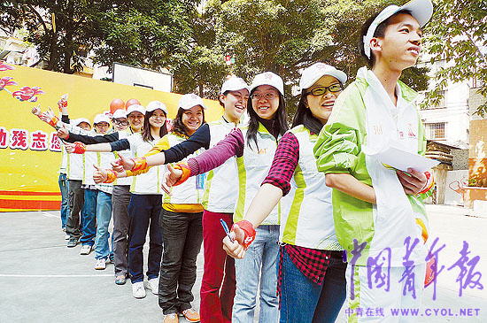 亞殘運會前夕,廣州助殘志愿者發(fā)起了助殘“一對一”結(jié)對幫扶行動,志愿者將以志愿結(jié)對、愛心幫扶的方式,和8歲至18歲重殘青少年實施“一對一”結(jié)對幫扶,從結(jié)對開始,一直幫扶到重殘青少年成年。結(jié)對后,各志愿者組織以及志愿者個人將通過陪同游覽新廣州,陪同觀看、收聽亞殘運會比賽,幫助重殘青少年實現(xiàn)成長心愿。