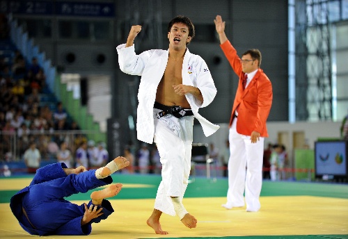 8月14日,在第二十六屆世界大學(xué)生夏季運(yùn)動會柔道男子81公斤級決賽中,日本選手川上智弘戰(zhàn)勝阿塞拜疆選手阿利姆,奪得冠軍。