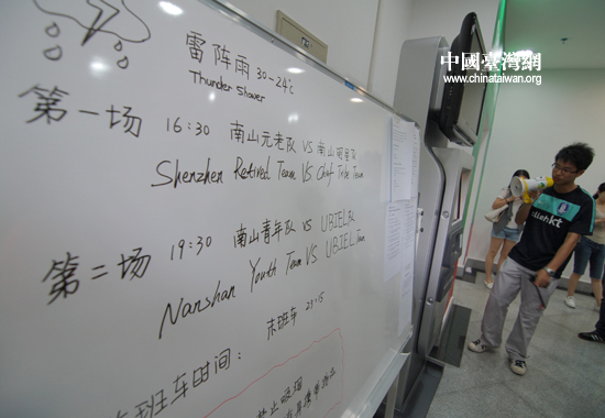 體育場內(nèi)白板上記錄著比賽場次 (中國臺灣網(wǎng) 田云鵬 攝)