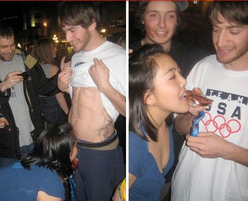 或許是被銅牌沖昏了頭腦,拉戈通過(guò)自己的微薄上傳了自己參加派對(duì)狂歡時(shí)的圖片。圖片顯示身著美國(guó)隊(duì)訓(xùn)練服的拉戈,佩戴著剛剛獲得的銅牌,而一名不知名的美女在他的肚臍下的位置親吻拉戈的獎(jiǎng)牌。而圖片很快被各大媒體網(wǎng)站所轉(zhuǎn)載,拉戈的不理智行為遭到了不少人的譴責(zé),不少美國(guó)人也認(rèn)為這是美國(guó)代表團(tuán)的恥辱。