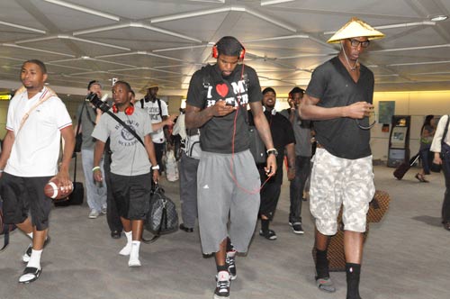 而應(yīng)姚明邀請(qǐng)的密爾沃基雄鹿隊(duì)新秀詹寧斯(Bran don Jennings)、火箭后衛(wèi)布魯克斯(Aaron Brooks)、曼斐斯灰熊隊(duì)中鋒塔比特(Hasheem Thabeet)等多名NBA球員,也在26日上午搭機(jī)抵臺(tái)。
