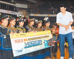 姚明代表姚基金贊助臺灣少數(shù)民族多族群文化交流協(xié)會四名小朋友前往上海觀看世博。(陳怡誠攝)