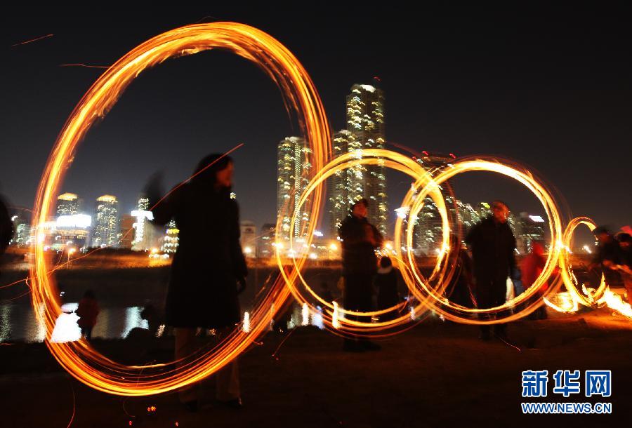 2月5日,在韓國首爾,人們?nèi)挤艧熁ㄓ。?dāng)日,為迎接即將到來的傳統(tǒng)節(jié)日——元宵節(jié),首爾居民舉行了多種慶;顒(dòng)。在韓國,元宵節(jié)有很多風(fēng)俗,如吃年糕、五谷飯、花生、核桃等干果,喝耳明酒,“焚燒月亮屋”許愿,放風(fēng)箏、玩尤茨游戲等。新華社發(fā)(樸真熙攝)