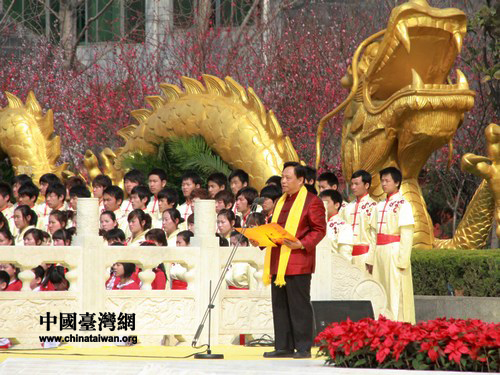 中國(guó)臺(tái)灣網(wǎng)4月5日新鄭消息 三月三,拜軒轅。今天上午,辛卯年黃帝故里拜祖大典在河南新鄭隆重舉行。全國(guó)人大副委員長(zhǎng)桑國(guó)衛(wèi)、全國(guó)政協(xié)副主席厲無(wú)畏、十屆全國(guó)人大常委會(huì)副委員長(zhǎng)許嘉璐等領(lǐng)導(dǎo)參加了大典,國(guó)臺(tái)辦副主任葉克冬、全國(guó)臺(tái)聯(lián)會(huì)長(zhǎng)梁國(guó)揚(yáng)、臺(tái)灣親民黨副主席張昭雄等人出席并敬獻(xiàn)花藍(lán)。