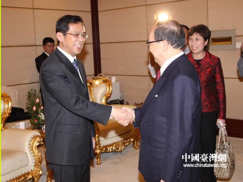 中共河南省委副書記、省政協(xié)主席、省委組織部長葉冬松在鄭州會(huì)見了前來河南參加“海峽兩岸(河南)觀光醫(yī)療產(chǎn)業(yè)合作論壇”的中國國民黨副主席蔣孝嚴(yán)。(圖片來源:河南省臺(tái)辦)