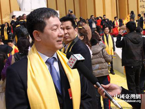 國臺(tái)辦副主任葉克冬在大典現(xiàn)場接受媒體采訪。圖片來源:河南省臺(tái)辦