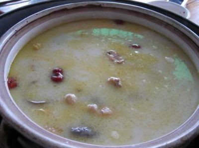 既然豬肚雞有這么好的食補(bǔ)功效,那么如何制作呢?在這里我給大家介紹一下豬肚雞的制作方法,有腸胃失調(diào)的朋友可以照做。首先,用面粉將豬肚反復(fù)搓洗干凈,然后開水燙一下去處異味,再用冷水浸泡待用。將切塊的雞肉(也可以用整只雞)用料酒、鹽、胡椒粉拌勻腌制入味,塞入處理好的豬肚中,拿棉線將口縫好。一切準(zhǔn)備就緒,將沙骨和所有的湯料以及處理好的豬肚雞,一塊放入砂煲中,先武火燒開,再文火燉2-3小時(shí)左右,將豬肚雞撈出拆線。把豬肚切條,與雞肉一起再放入沙煲中,加入鹽、牛奶一杯,再煲30分鐘左右,一鍋暖胃養(yǎng)身的豬肚雞就做好了。