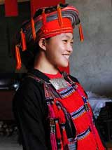 中國歷史上遷徙較多的一個民族,其先民一般認為是秦漢時長沙武陵蠻的一部分,或說源于“五溪蠻”。自隋唐開始,廣西瑤族由湖南和廣東等地遷入。到明代,廣西成為瑤族的主要分布區(qū),主要聚居在金秀、巴馬、都安、大化、富川、恭城 6個瑤族自治縣,幾逯递^多,有盤瑤、過山瑤、頂板瑤、花籃瑤、白褲瑤、藍靛瑤、紅瑤、茶山瑤等稱謂,幾逵凶约旱恼Z言,屬漢藏語系苗瑤語族,其語言支系復雜,幾宓貐^(qū)一般通用漢文或壯文,沒有本民族文字。 瑤族的宗教信仰因地而異,有自然崇拜、祖先崇拜,也有圖騰崇拜。還有些地區(qū)信仰巫術和道教,幾宸课萁ㄖL格多樣,其中最具特色的是木樓。木樓依山傍水,前低后高,坐落方向不限。木樓群一般分為三層 :吊樓下為第一層,用于圈家畜;第二層住人;第三層儲存糧食和物品。木樓建造無須一根鐵釘,十分堅固。室內陽光充足,空氣流通。古有“瑤好五色衣裳”之稱,瑤族服裝常飾五色絲線的繡花 ,幾鍕D女頭飾最為講究,有“龍盤”形、“A”字形、“半月牙”形等。“龍盤”形是把十多米長的繡花巾盤在頭上;“A”字形是指用繡花巾纏繞而成,上窄下寬,再系上各色絲絨線和彩色珠子;“半月牙”形是指將三塊“半月牙”型的銀牌置于頭頂上……,幾宄4⿲鬅o扣上衣,系腰帶。男子下身穿青褲,護綁腿。女子上衣圖案豐富多彩,有花、鳥、魚、蟲、幾何圖案、人物形象…… ,衣領有圓領、豎領兩種,下身穿布片裙、繡花裙等。