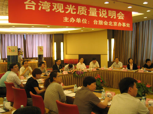 臺(tái)灣海峽兩岸觀光旅游協(xié)會(huì)北京辦事處今天下午在這里舉辦了臺(tái)灣觀光質(zhì)量說(shuō)明會(huì),邀請(qǐng)新開放赴臺(tái)旅游的大陸6個(gè)省區(qū)旅游部門和組團(tuán)旅行社人士參與座談。席間,組團(tuán)社紛紛表示,各地民眾赴臺(tái)旅游意愿強(qiáng)烈,希望未來(lái)能在西部地區(qū)新增兩岸直航航點(diǎn)。