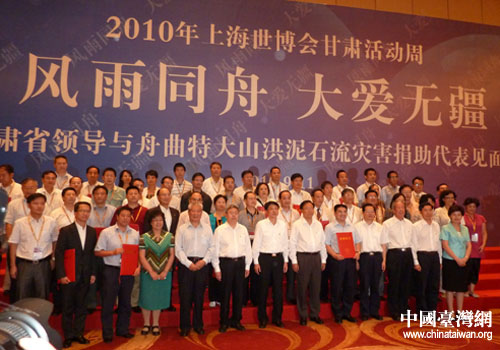 中國臺灣網(wǎng)9月15日舟曲消息 日前,在上海世博會甘肅活動周開幕式上,16家臺資企業(yè)和全國臺企聯(lián)發(fā)揚大愛無疆、愛心無限的精神,慷慨解囊,為甘肅舟曲捐款1780萬元、捐物150萬元。甘肅省省委書記陸浩、代省長劉偉平等領(lǐng)導會見了捐款企業(yè)代表并頒發(fā)捐款證書。