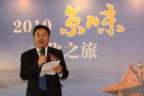 本屆京味文化參訪團團長高振生、北京民間文藝家協(xié)會副主席于志海、臺北市文化局專門委員李麗珠、旺旺中時文化傳媒總經(jīng)理王綽中、新光三越臺北信義新天地店長楊宗榮以及著名攝影家柯錫杰為活動剪彩。