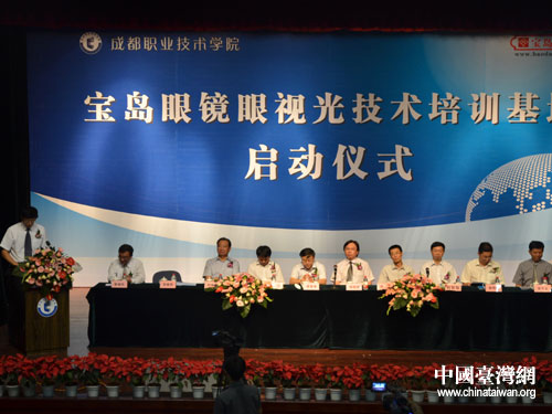 中國(guó)臺(tái)灣網(wǎng)6月30日成都消息 6月29日,在成都職業(yè)技術(shù)學(xué)院青羊校區(qū)內(nèi),舉行了成都職業(yè)技術(shù)學(xué)院與四川寶島光學(xué)有限公司合作“寶島眼鏡眼視光技術(shù)培訓(xùn)基地”啟動(dòng)儀式。成都市副市長(zhǎng)傅勇林出席并致辭。市臺(tái)辦主任戴浚、副主任唐明建,市教育局副局長(zhǎng)劉智慧,臺(tái)灣寶島光學(xué)科技(股)公司董事長(zhǎng)蔡國(guó)洲,臺(tái)灣東海大學(xué)嘉賓等40余人參加了儀式。