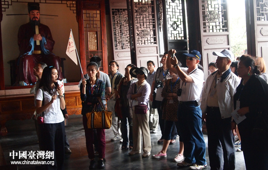 13日,參加情系巴蜀—兩岸文化聯(lián)誼行活動的臺灣嘉賓參觀眉山“三蘇祠”。(中國臺灣網(wǎng) 張瑞宸 攝)