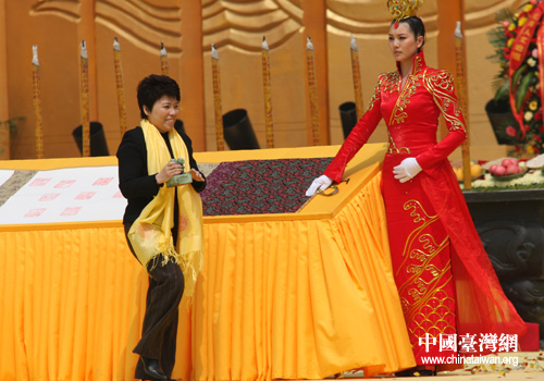 奧運(yùn)冠軍鄧亞萍祈福中華盛世(中國(guó)臺(tái)灣網(wǎng) 宿靜 攝)