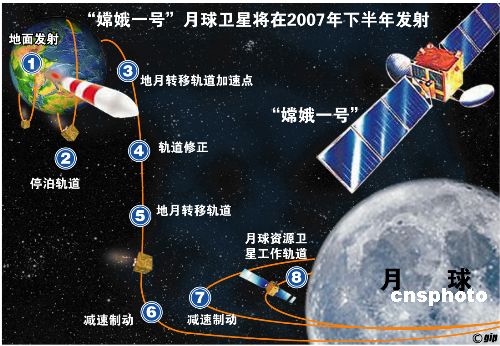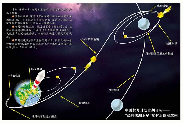 圖表:中國(guó)探月計(jì)劃首期“繞月探測(cè)衛(wèi)星”發(fā)射步驟示意圖
