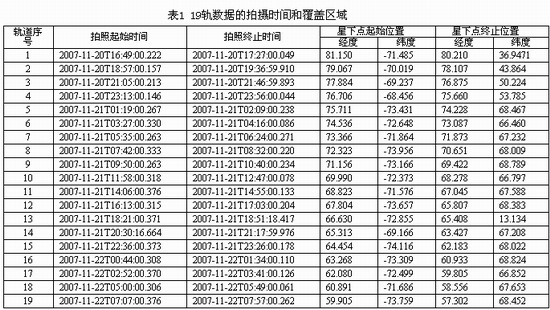 | 表1 19軌數(shù)據(jù)的拍攝時間和覆蓋區(qū)域 |