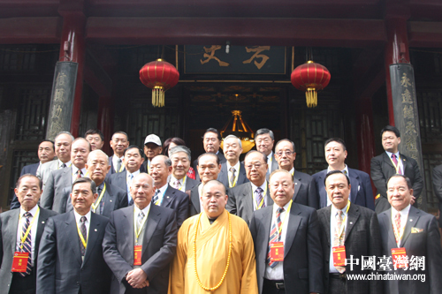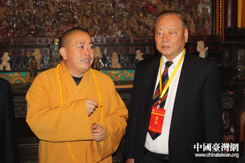 臺(tái)灣退役將領(lǐng)參訪團(tuán)與少林寺方丈釋永信法師合影(中國(guó)臺(tái)灣網(wǎng) 趙輝 攝)