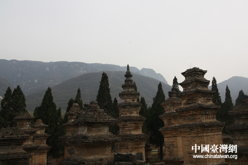蒼茫的少室山與歷史悠久的塔林建筑(中國(guó)臺(tái)灣網(wǎng) 趙輝 攝)