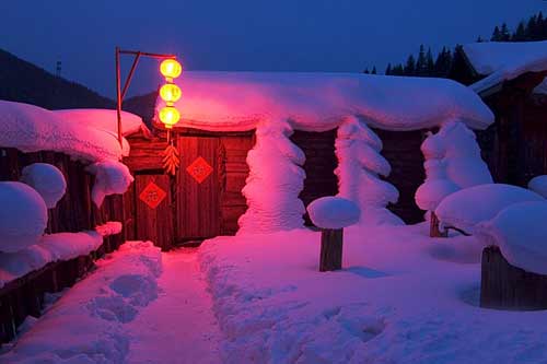 北國風光,千里冰封,天氣雖然寒冷卻擋不住人們過大年的熱鬧氣氛。被譽為“東北大森林之口”的林口縣從初一到十五,每家每戶都要掛上紅燈籠,一直亮堂著的紅燈籠將雪地裝點得倍有過年的氣氛,如果從高處看,整個村莊如渾身散發(fā)著火熱的感情,零下40℃的氣溫絲毫也不覺得寒冷。孩子們則要拎著紅燈籠到鄰居家或是親戚朋友家串門,能收獲大利是。外面一派白茫茫,孩子們提著大紅燈籠,打扮得色彩斑斕、奔走在夜色流光里,有一種溫暖滿溢出來。