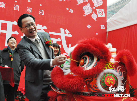 (紅網(wǎng)董事長、總經(jīng)理、總編輯舒斌在為金獅點晴。)