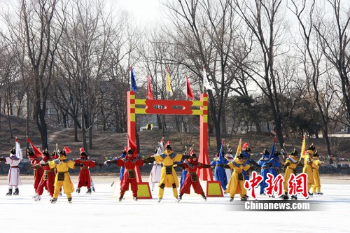 清代歷史上被視為“國(guó)俗”的冰嬉表演在消失百年后首次重現(xiàn)古都北京,成為第二屆圓明園皇家廟會(huì)的最大亮點(diǎn)。 應(yīng)妮 攝