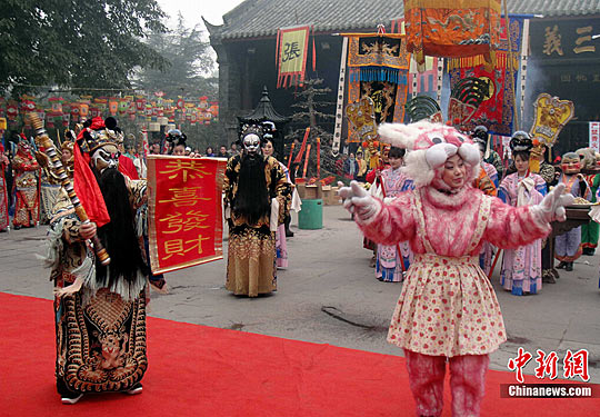 中新網(wǎng)成都2月3日電 (記者 楊杰)兔年正月初一上午10時(shí),“游喜神方”百人仿古祭祀大典在“2011成都大廟會(huì)”隆重上演。