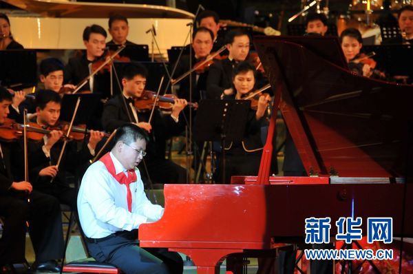 圖為13歲的朝鮮少年鋼琴手在音樂(lè)會(huì)上演奏中國(guó)鋼琴協(xié)奏曲《黃河》。新華社記者高浩榮攝