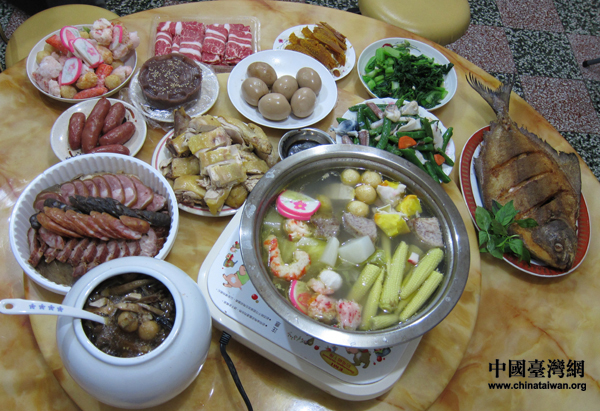 中國(guó)臺(tái)灣網(wǎng)2月3日臺(tái)北消息 除夕夜是農(nóng)歷年的活動(dòng)起點(diǎn),這天最重要的事情就是家人團(tuán)圓圍爐、開(kāi)心地吃頓年夜飯。一般人家的年夜飯菜色,當(dāng)然比不上五星飯店的豐富、精致,但平日在外地忙碌的家人,能團(tuán)聚在一起,已經(jīng)是最大的福份。而且,圍爐菜的名稱,通通寓意深遠(yuǎn),隱含著無(wú)限祝福;蛟S,在臺(tái)灣民眾的心中,新的一年,守護(hù)全家人簡(jiǎn)單的幸福,就從這一道道吉祥又如意的年夜菜開(kāi)始。(圖/文 大陸臺(tái)生會(huì) 林峻生)