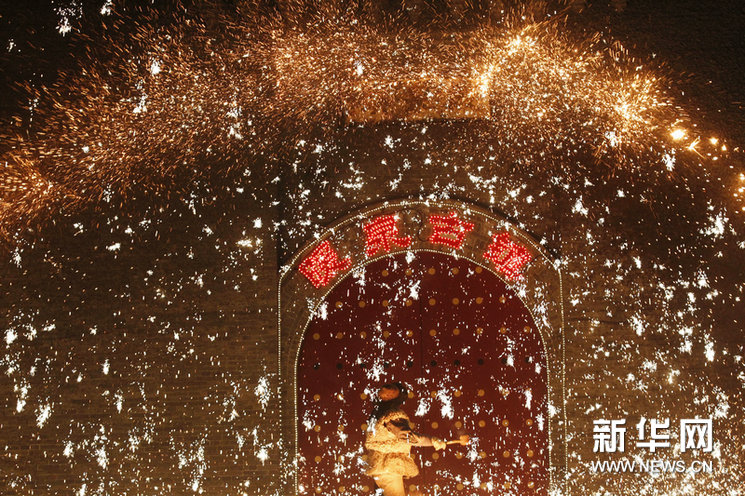 2月16日,在河北省蔚縣暖泉鎮(zhèn),民間藝人向古城堡上潑灑鐵水,表演“打樹花”。 “打樹花”是蔚縣暖泉鎮(zhèn)別具特色的節(jié)日社火民俗活動(dòng),歷史悠久。每年元宵節(jié)期間,民間藝人用熔化的鐵水潑灑到城墻上,迸濺形成萬朵火花,其狀如枝繁葉茂的樹冠而被稱為“樹花”!按驑浠ā北磉_(dá)人們歡度節(jié)日和向往甜美生活的美好愿望。新華社記者 任正來 攝