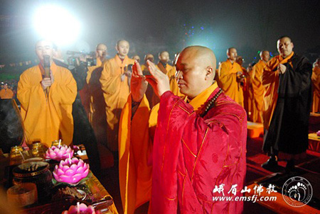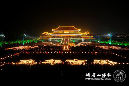 佛教在線四川訊 2011年2月16日(農(nóng)歷正月十四)晚,由峨眉山佛教協(xié)會主辦的“萬盞明燈供普賢”大型祈福供燈法會在峨眉山大佛禪院前山門廣場隆重舉行,當天法師、居士、游人、市民近萬人參加了法會。法會禮請中國佛教協(xié)會副會長、四川省佛教協(xié)會會長、峨眉山佛教協(xié)會會長永壽法師主法。