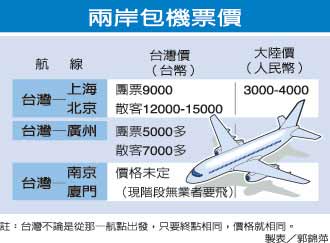 東南旅行社經理黃國軒表示,由于各家航空公司直航包機的起降時間還未最后敲定,若排在好時段,也會比一般時段票價高出五百至八百元。
