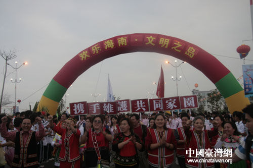 中國(guó)臺(tái)灣網(wǎng)11月17日瓊海消息 昨天下午,正在海南參加第二屆兩岸大學(xué)生冬令營(yíng)的兩岸師生,專程從三亞市趕赴瓊海,參加正在隆重舉行的第八屆海南歡樂節(jié)開幕式及巡游活動(dòng)。在這里,他們與從剛剛到達(dá)海南的臺(tái)灣少數(shù)民族代表團(tuán)不期而遇,成為了巡游中最受矚目的群體。