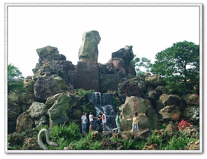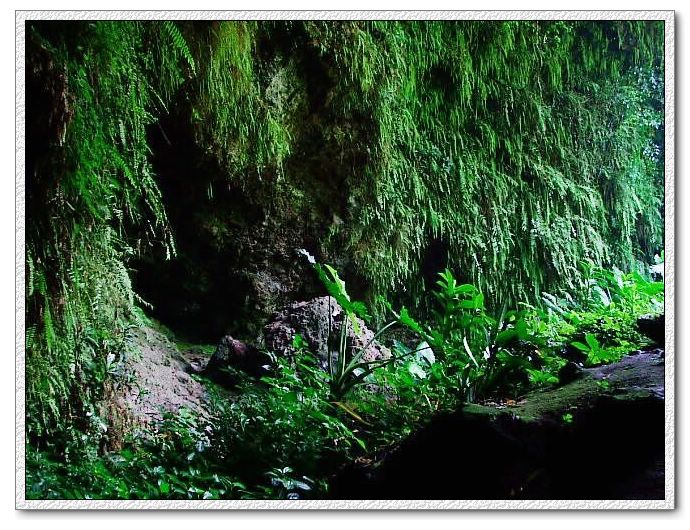 要觸摸到那些2.7萬年前從火山口里噴射出來、已經(jīng)凝固了多年的巖漿石非常容易,只要你走進火山口國家地質(zhì)公園所在的石山鎮(zhèn),鎮(zhèn)上人家的圍墻基石幾乎都是用較大塊的巖漿石堆砌而咸,公路兩邊散落的小塊巖漿石也到處可見。進火山口公園里主要就是去看看那個火山口,先是爬上一些石階,經(jīng)過一叢很大很密的野菠蘿樹后,你就能站在火山口的邊沿上了.從邊上往下看,火山口就像是一個很大的綠色洞口,因為洞邊的石壁上滿披著綠色的各種植物,洞口上寬下窄,越往下光線就越暗.石壁邊造了兩條小石階供游客走下火山口去, 不用多久就到洞底。那曾經(jīng)噴發(fā)出灼熱熔巖的火山口已經(jīng)隱身在陰霾與幽綠之中,細細的水流從洞里流出來,除了潮濕與森森的冷氣,無論怎樣使勁地發(fā)揮想像力,也很難把當前的情景與2.7萬年前火山爆發(fā)的情景聯(lián)系起來.雖然據(jù)說在這火山口的附近有大小72個隧洞縱橫交錯,但站在洞口你什么也看不出來?催@火山口實在沒有什么趣味,返回嶺上,可以看到?谑惺腥荨