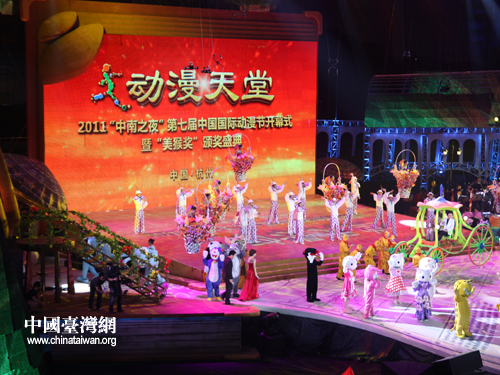 中國(guó)臺(tái)灣網(wǎng)4月28日杭州消息 今晚,第七屆中國(guó)國(guó)際動(dòng)漫節(jié)開(kāi)幕式暨“美猴獎(jiǎng)”頒獎(jiǎng)晚會(huì)在杭州隆重開(kāi)幕。全國(guó)人大常委會(huì)副委員長(zhǎng)韓啟德,國(guó)家廣電總局副總編輯、宣傳管理司司長(zhǎng)金德龍等出席開(kāi)幕式。
