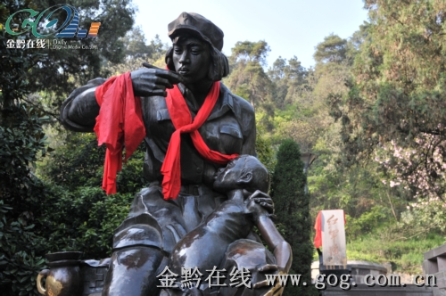 山上還有一座青石圓墳,墳前立著一塊石碑,上書“紅軍墳”三個(gè)大字,導(dǎo)游告訴我們,這里面埋葬的,是一位當(dāng)年為遵義人民治病而慘遭反動(dòng)派殺害的紅軍衛(wèi)生員,他叫龍思泉,前來拜祭的人都親切的稱他為“紅軍菩薩”。