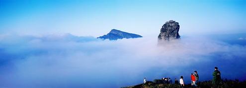 梵凈山很奇特、險(xiǎn)峻,尤其引人入勝的是新金頂,在海拔約2200余米的崇山峻嶺上,突起一個(gè)山峰,像陽(yáng)朔的丹霞一樣,但是,只有一個(gè),高約100米,如巨筍出土,常常紅云環(huán)繞(哈蘇6x6的片子有反映,另貼),直插蒼宇,令人震撼。1618年,奉圣旨立碑曰:“眾名岳之宗”,可見(jiàn)梵凈山在皇帝眼里的位置了。