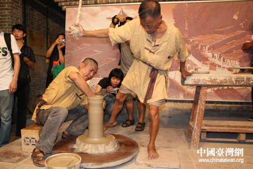 南風(fēng)古社內(nèi)的傳統(tǒng)陶藝表演(中國臺灣網(wǎng) 趙輝 攝)