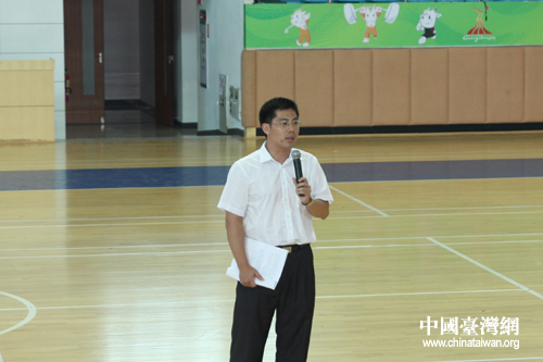 東莞市體育局副局長(zhǎng)詹志雄為媒體介紹亞運(yùn)會(huì)籌備情況(中國(guó)臺(tái)灣網(wǎng) 趙輝 攝)