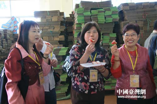 來自臺南縣的記者品嘗黃益豐農(nóng)場里出產(chǎn)的蓮霧贊不絕口