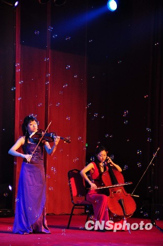 圖為臺灣弦音室內(nèi)樂集的藝術(shù)家在表演弦樂五重奏《臺灣民謠組曲》。中新社發(fā) 馬俊杰 攝