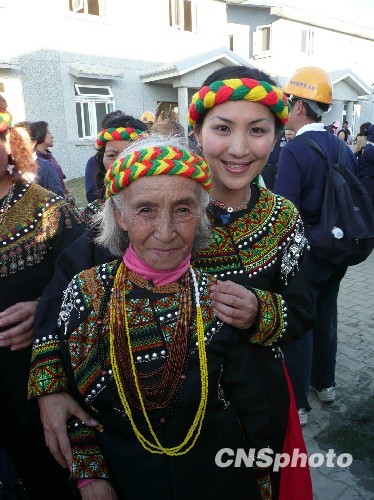 5點30分,在綿延不盡的三百桌宴席上,來自桃源鄉(xiāng)、那瑪夏鄉(xiāng)、六龜鄉(xiāng)、甲仙鄉(xiāng)、茂林鄉(xiāng)、旗山鎮(zhèn)及杉林鄉(xiāng)等的受災(zāi)鄉(xiāng)親團團圍坐,共話親情。和布農(nóng)族酋長一起圍桌慶祝的一位年輕母親懷抱著1歲多大的孩子,感到很慶幸。她家人口多,有10多戶,現(xiàn)住在營區(qū),但過年后就可搬到32坪的大房子里住了。