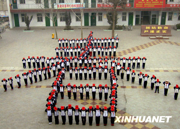 1月19日,河北省廣平縣明德小學(xué)學(xué)生列隊(duì)組成巨型“春”字。